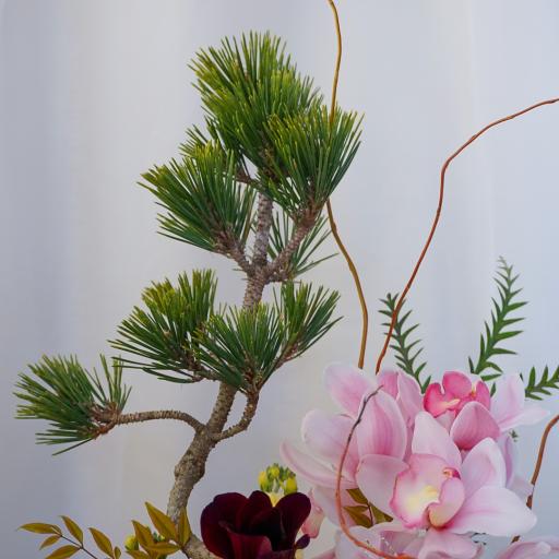新しい年を、おめでたく華やかに迎えましょう。ブラックのスタイリッシュな器に、高さを出したアレンジメントです。動きのある個性的な松を使用し、お正月らしい豪華なお花を使います。松や南天は福が来る・縁起がいいとされており、水引きをあしらっておめでたいムードに。高さを出すデザインなので壁際や玄関、受付などオススメです。お客様へ発送する直前に入荷した一番フレッシュなお花を、HANABOZEフローリストが厳選し作成します。