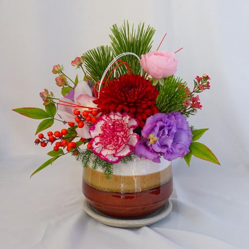 【お正月アレンジ】レッド×パープル■信楽焼の器/送料込み※着日指定なしのご注文で29日のお届け