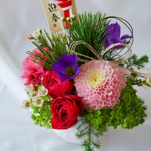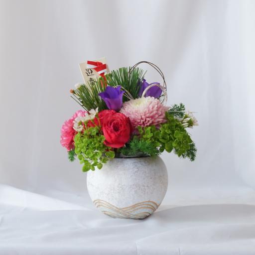 新しい年を、おめでたく華やかに迎えましょう。ピンクやレッドのお花をメインに、昔から福が来る・縁起のいいとされている松を合わせます。水引きをあしらっておめでたいムードに。スペースをあまりとらないサイズ感でテーブルやカウンターなど限られたスペースに簡単に飾ることができます。お客様へ発送する直前に入荷した一番フレッシュなお花を、HANABOZEフローリストが厳選し作成します。