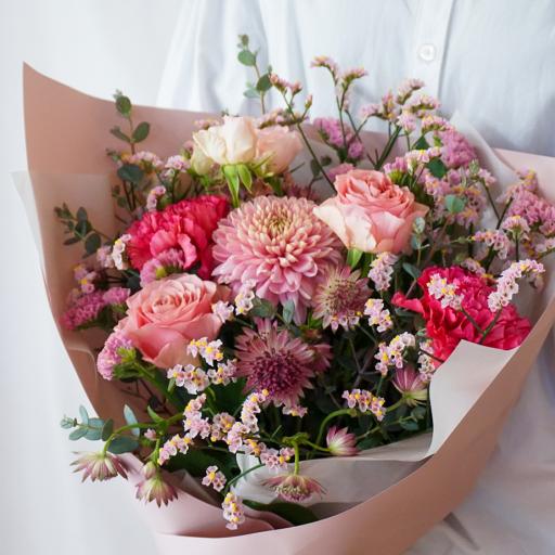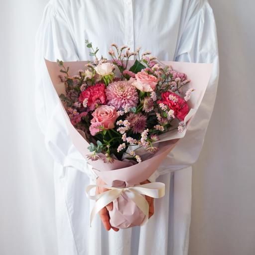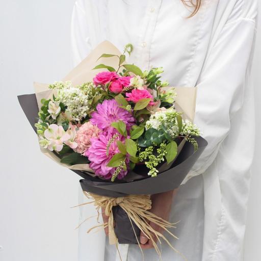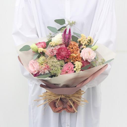 定番*ピンクを使ったグラデーションデザインです。飾るだけで一気に空間が華やぎ、パッと明るい気分にさせてくれます。お花に合わせてグリーンもふんだんに使用します。ギフトでも、ご自身用へのご褒美にも。お客様へ発送する直前に入荷した一番フレッシュなお花を、HANABOZEフローリストが厳選し作成します。旬なお花をメインに、ボリュームよくお作りします。
