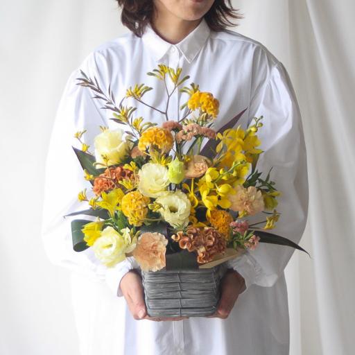 【季節のアレンジ】イエロー×オレンジ■Mサイズ/送料込み
