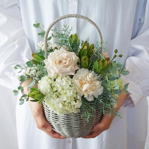 人気のコロンとかわいいバスケットアレンジメント