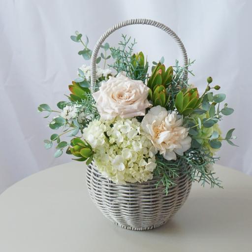 【バスケットアレンジメント】 ホワイトグリーン/送料込み